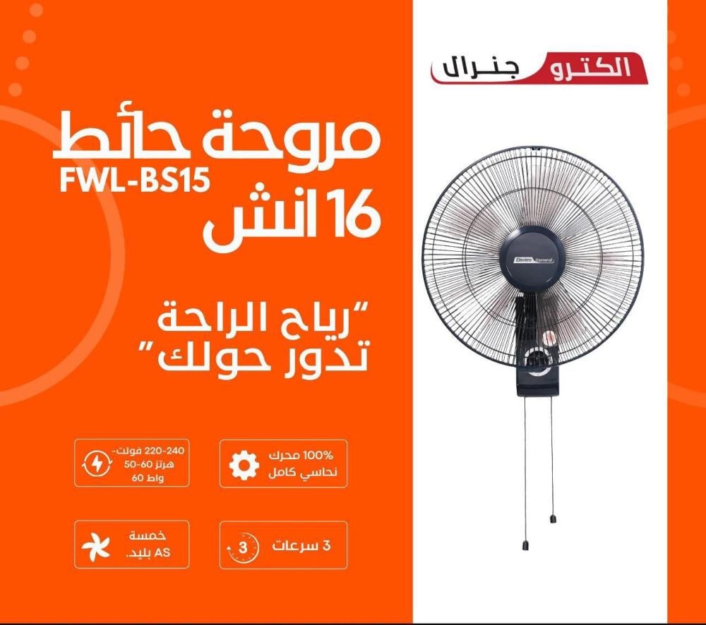 مروحة كهربائية الكترو جنرال جداري ، 60 واط